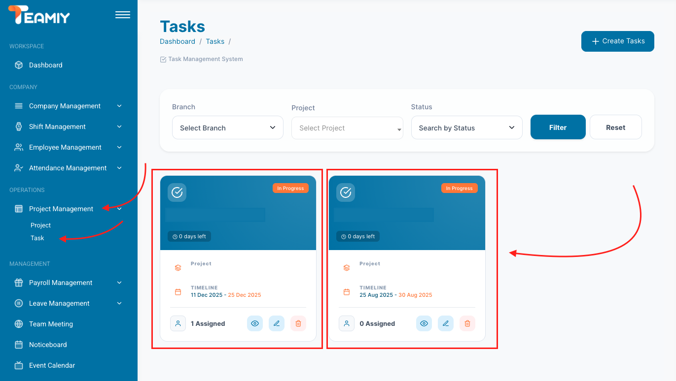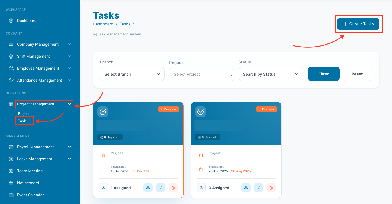 Step 01: Open task from Project Management